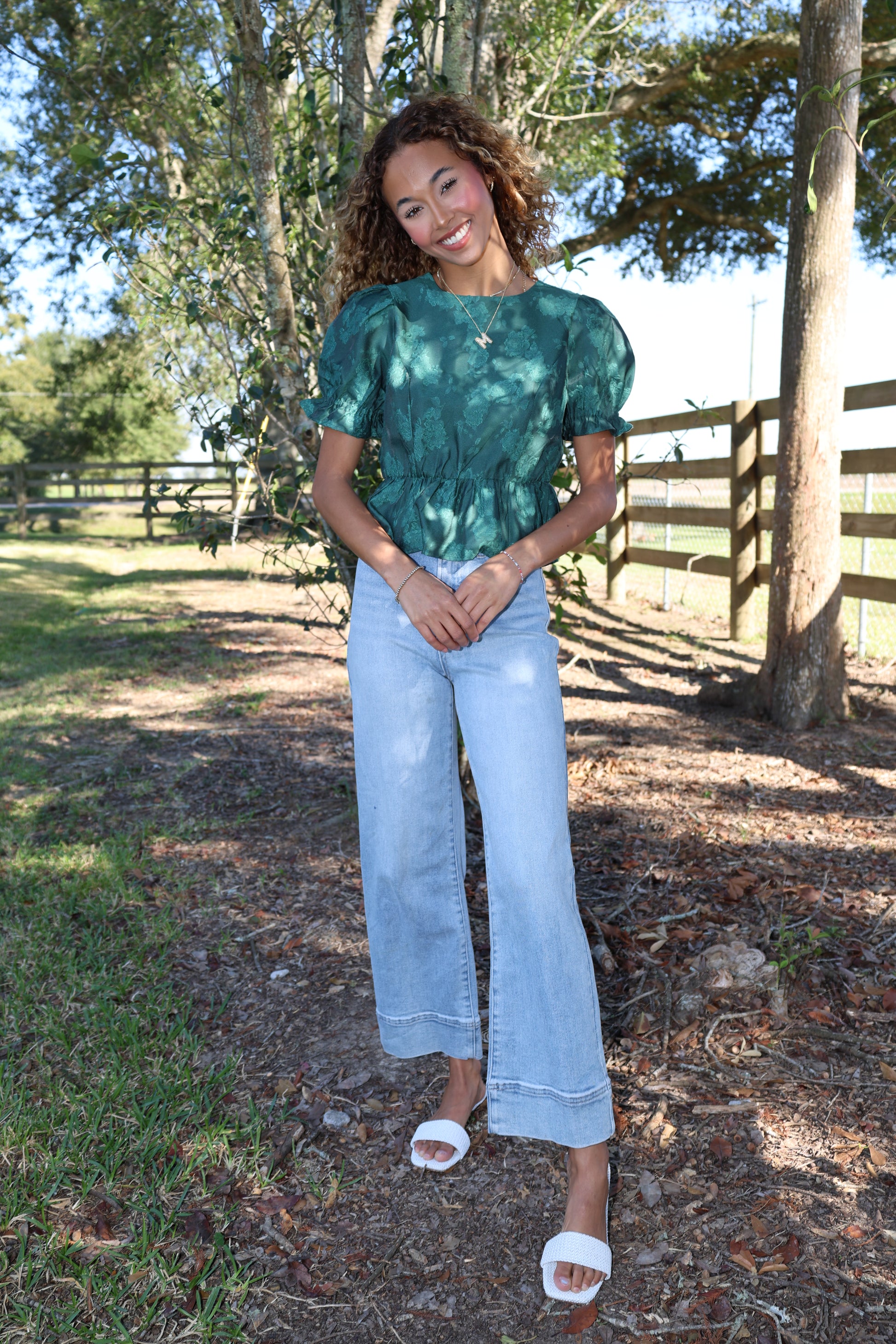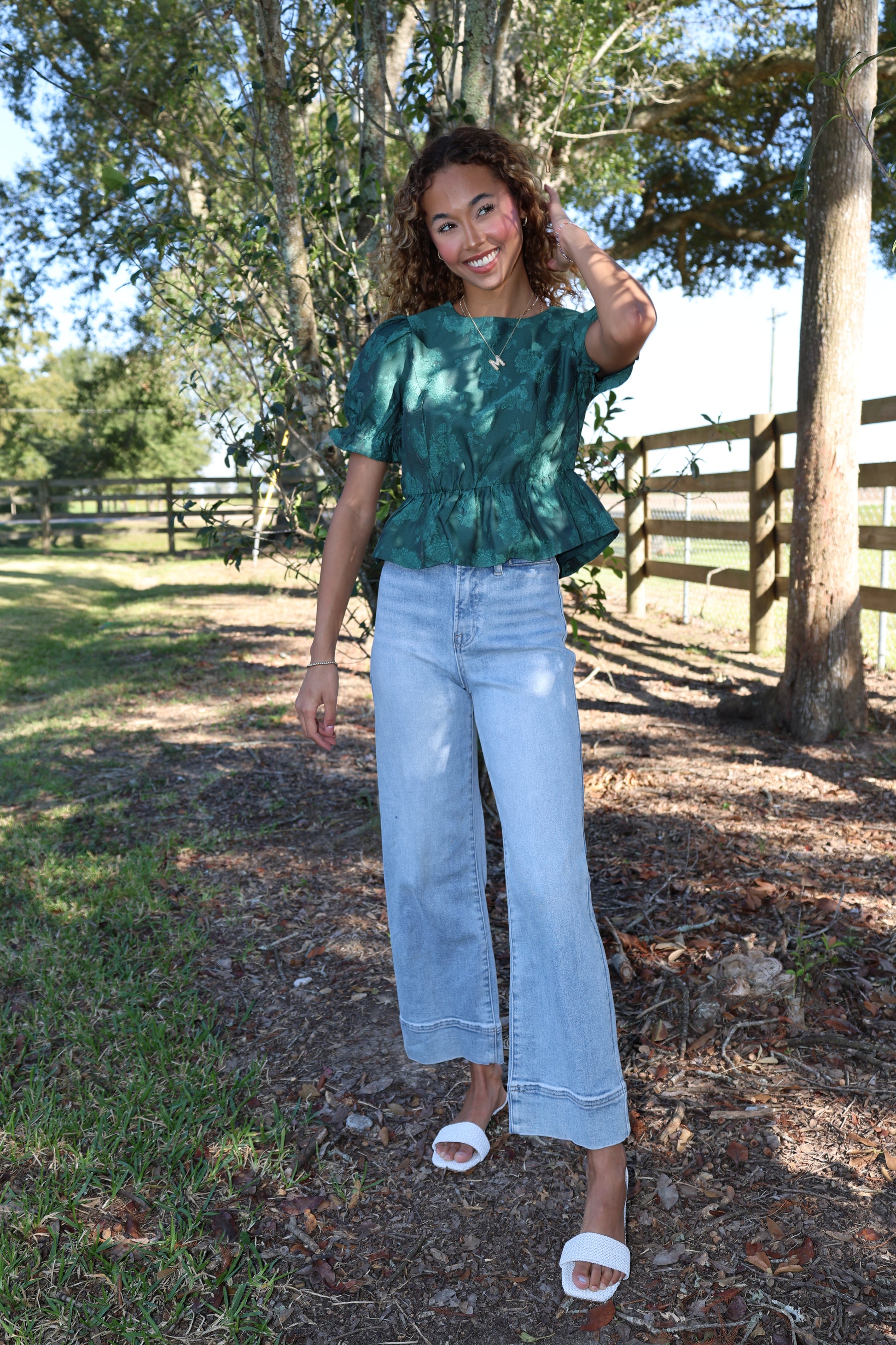 Get a playful look with the Addina Top. This green top is perfect for the fall season and will add a pop of color to any outfit. Whether you pair it with jeans or a skirt, this top is sure to make a statement.
