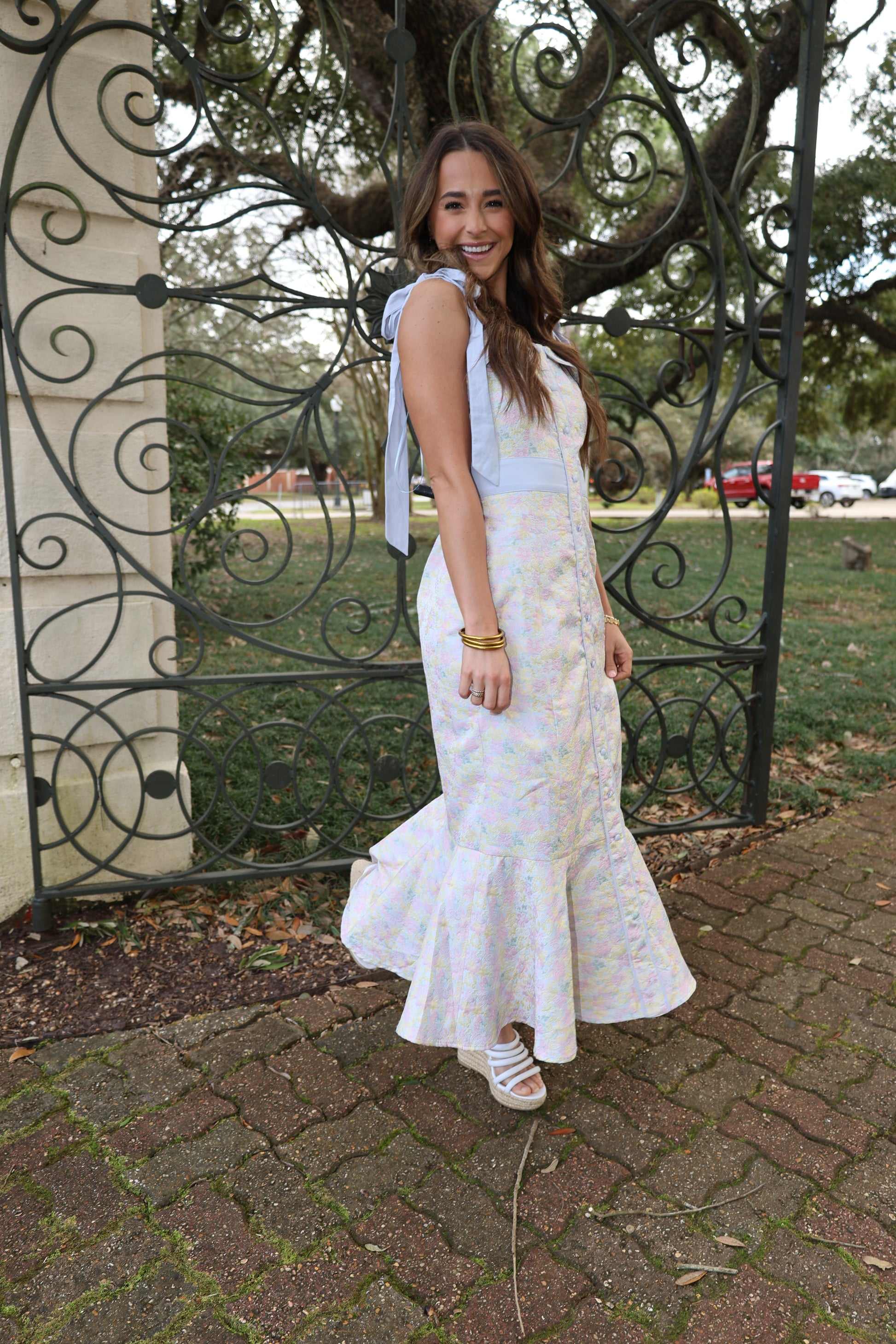 Be the guest who blooms in this playful Blooming Midi dress. Featuring a stunning floral design in the perfect shade of blue, this maxi dress is perfect for any occasion, from weddings to baby showers. Add a touch of spring to your wardrobe and stand out in your senior pics. (Flower crown not included.)