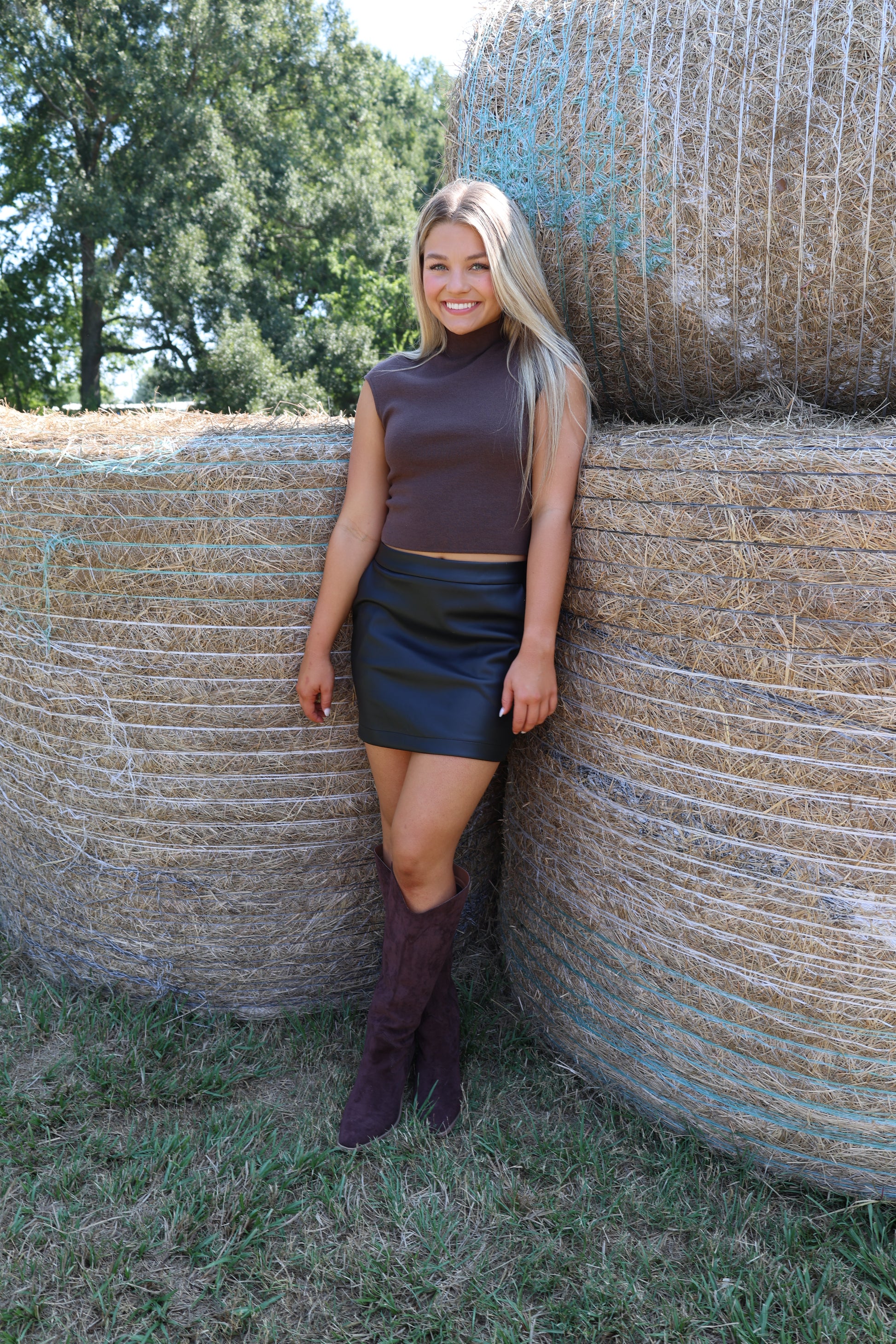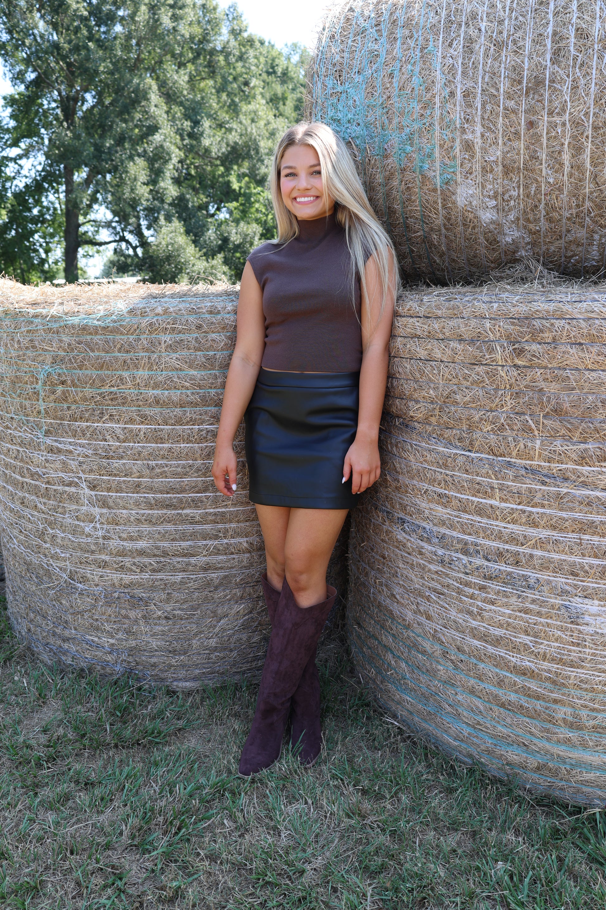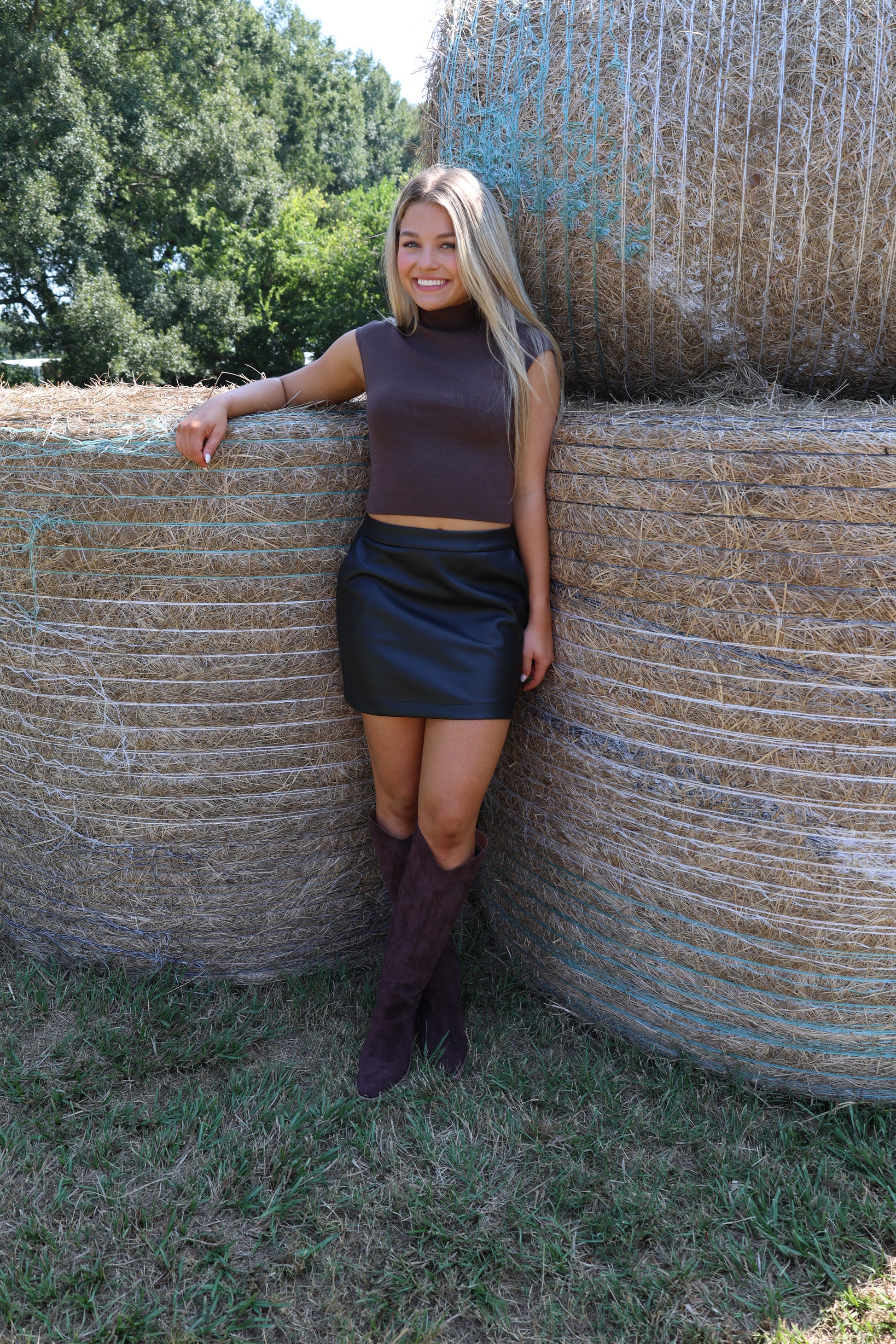 Get ready to rock the game day look with our Haydenn Skirt. Made from soft leather, this black skirt is perfect for the fall season. Comfortable and stylish, it's a must-have for any game day (or any day, really). Go team!