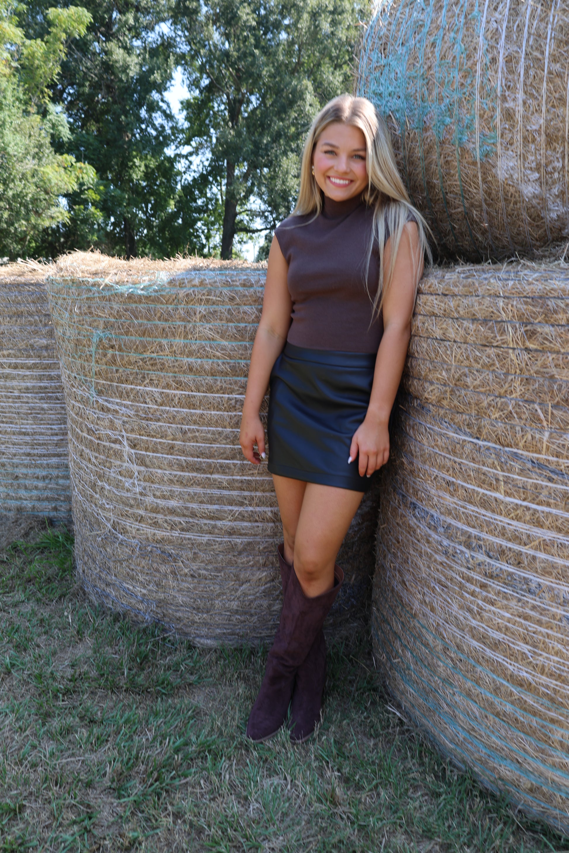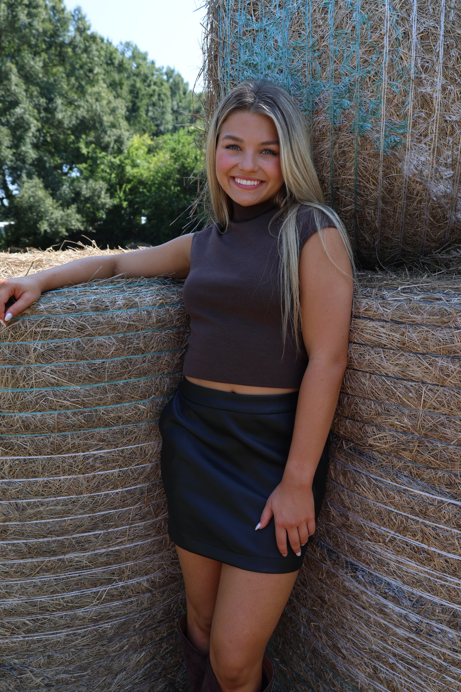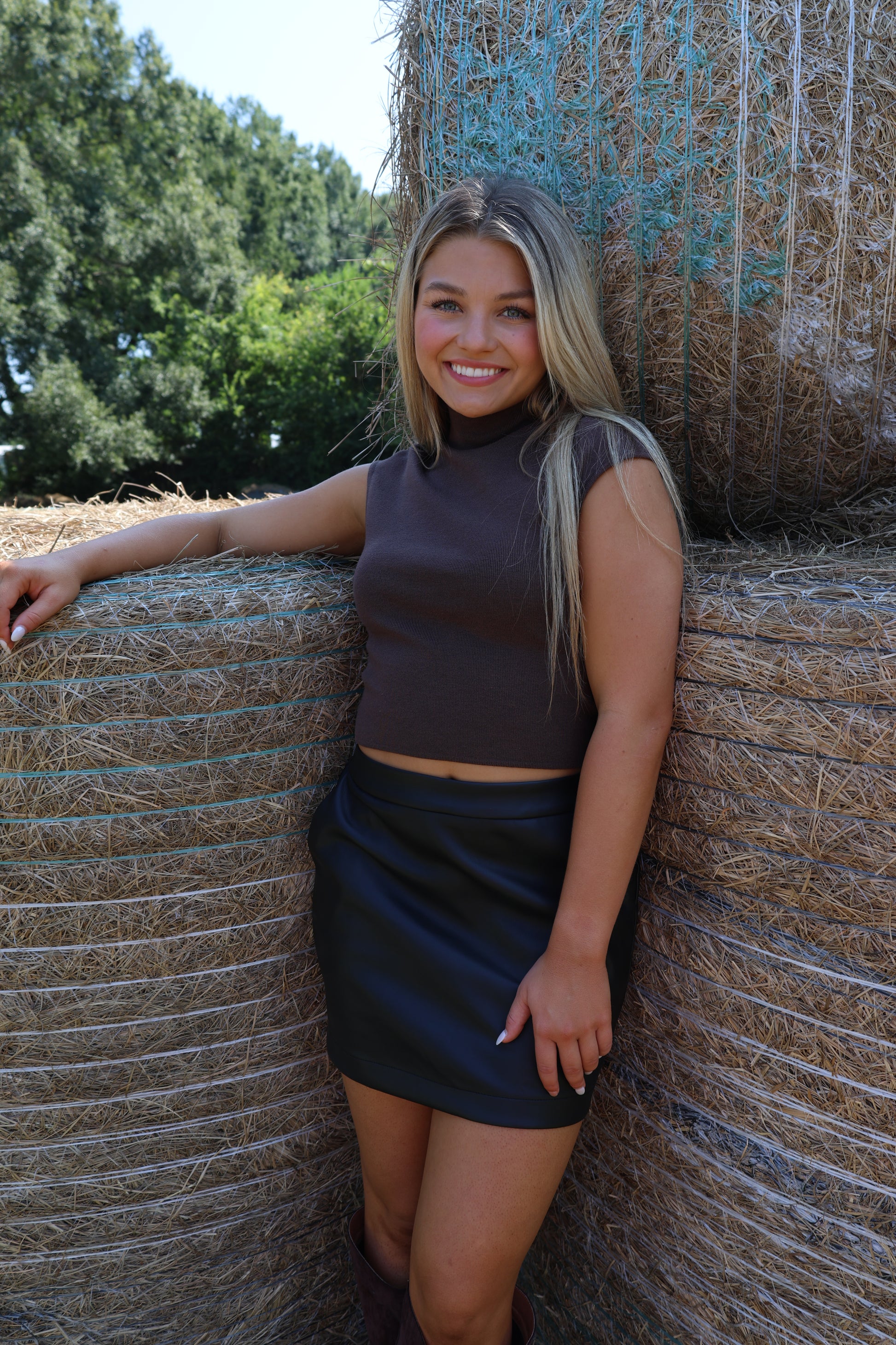 Get ready to rock the game day look with our Haydenn Skirt. Made from soft leather, this black skirt is perfect for the fall season. Comfortable and stylish, it's a must-have for any game day (or any day, really). Go team!