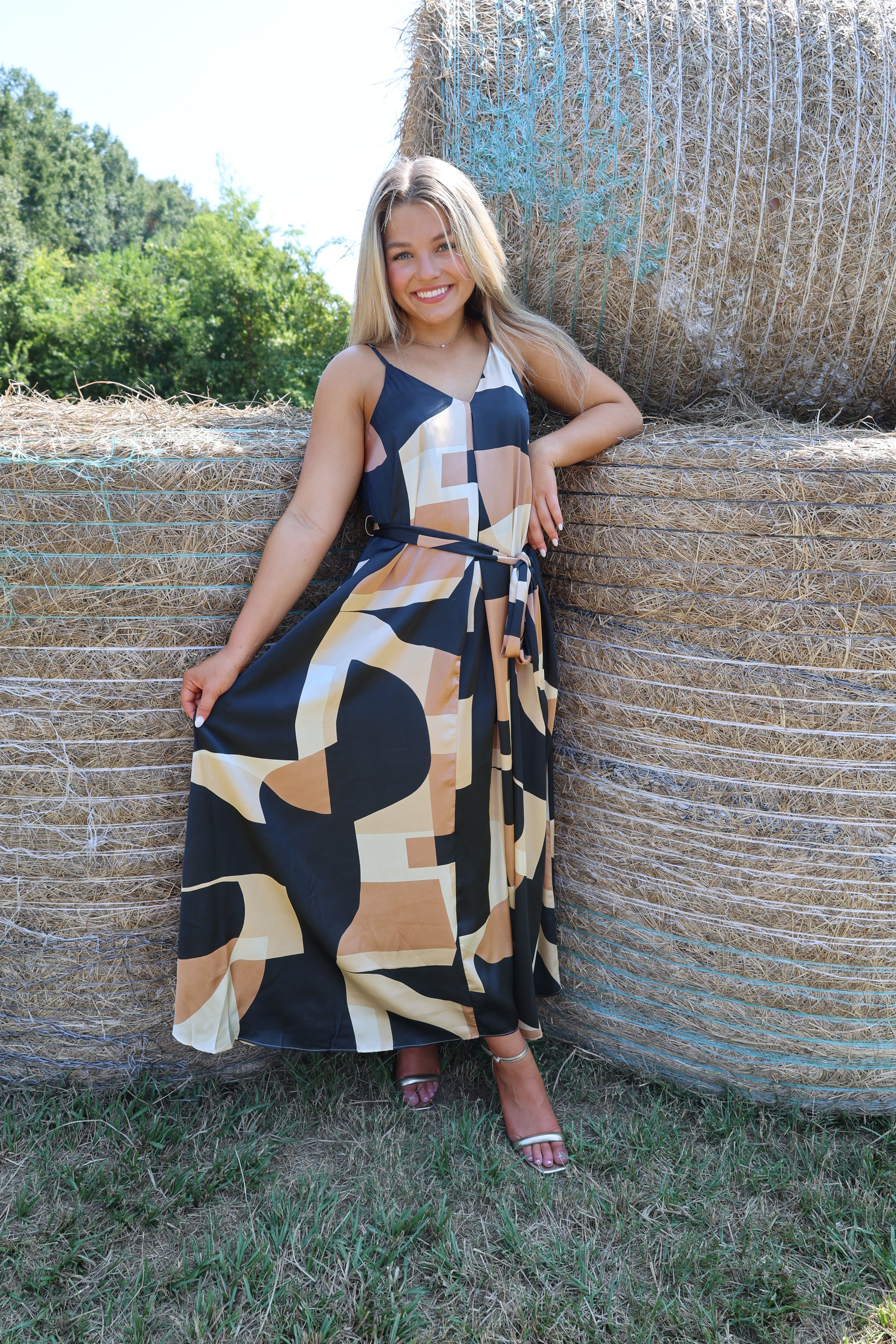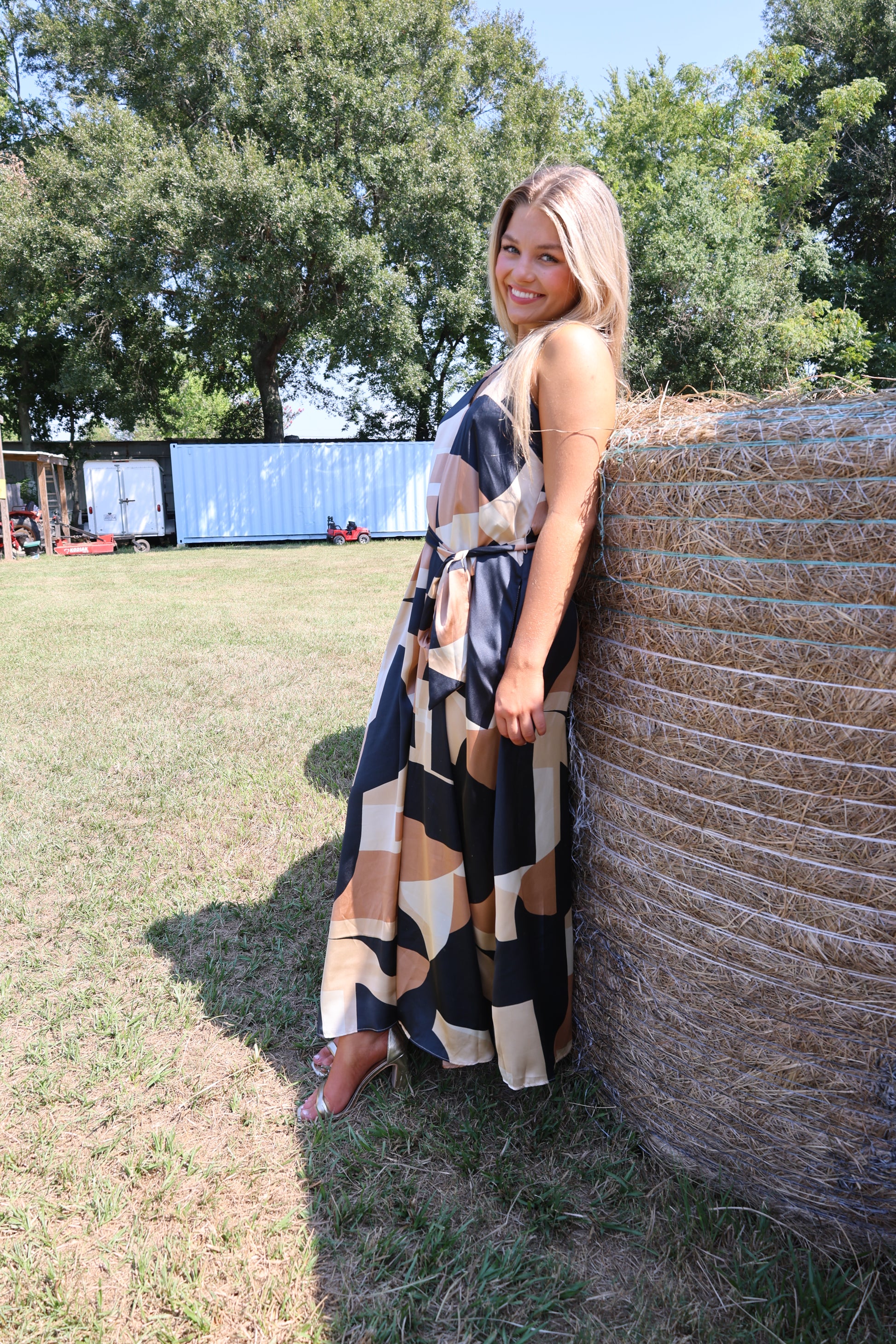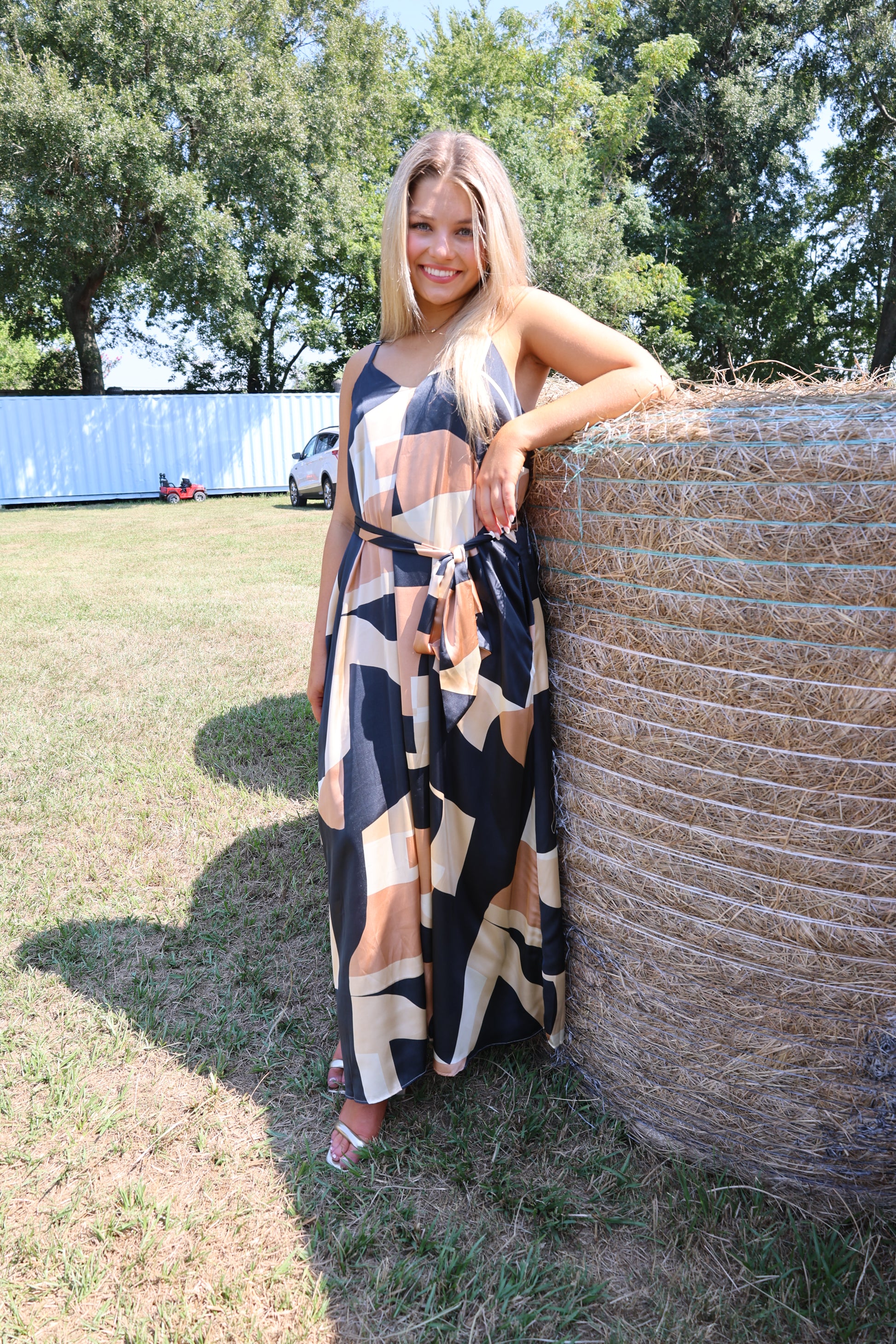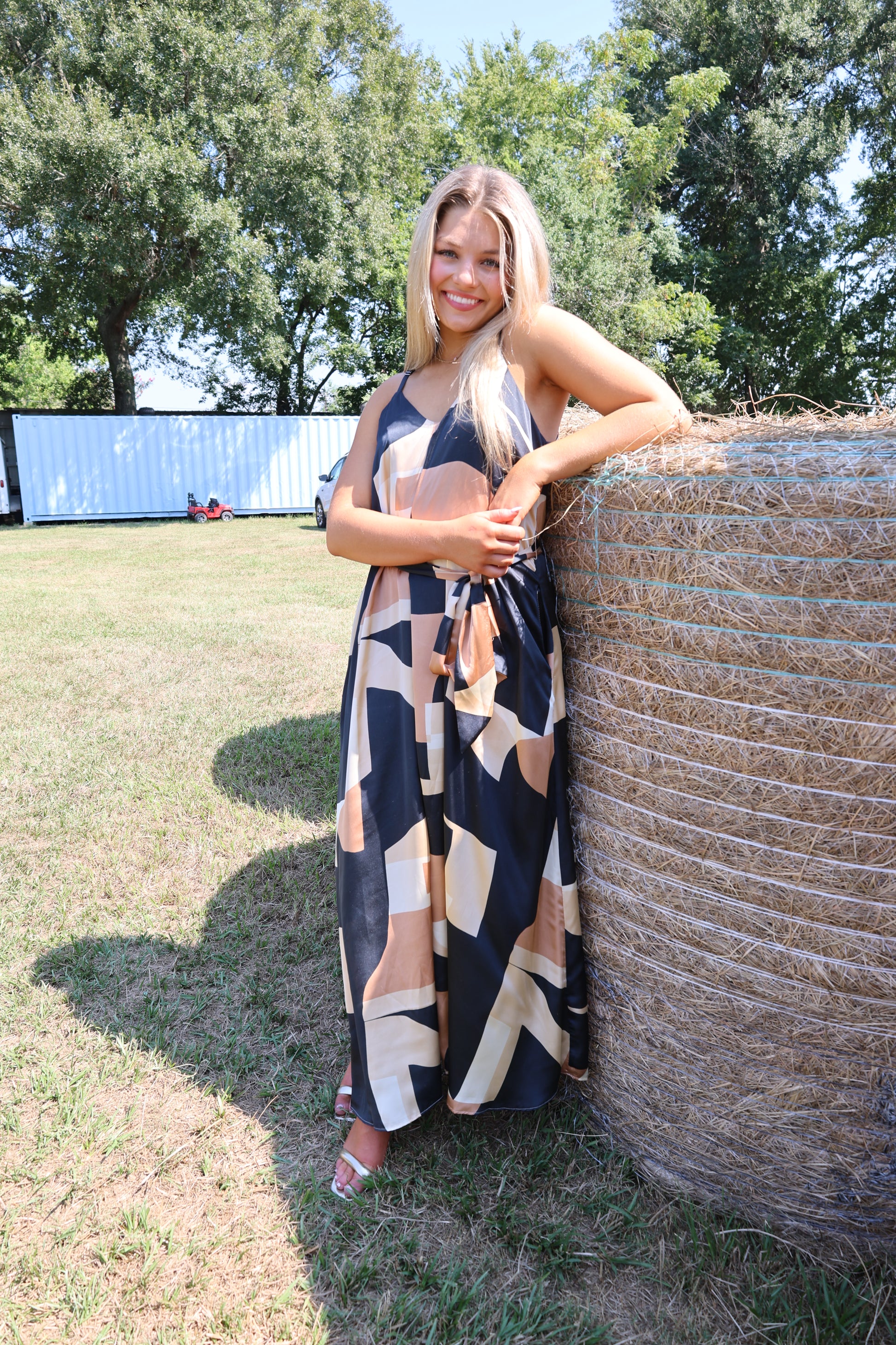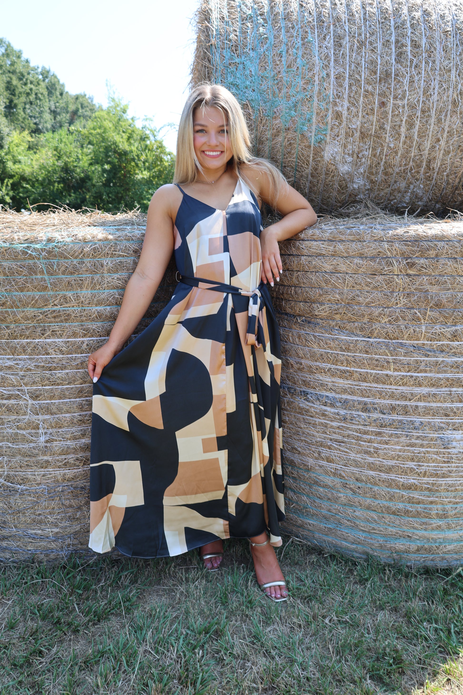 Dress to impress in our Midnight Dress! With a unique pattern and maxi length, it's perfect for fall events and family photos. (Don't worry, we won't tell if you wear it more than once!)