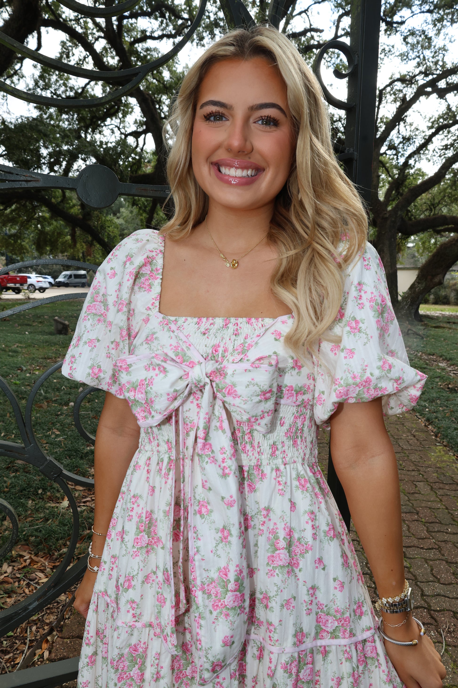 Get ready for spring with the Rosemary Dress! This flirty maxi dress in a playful shade of pink will have you feeling effortlessly stylish. The bow detail adds a touch of whimsy to this fun and feminine look. Perfect for any spring occasion.
