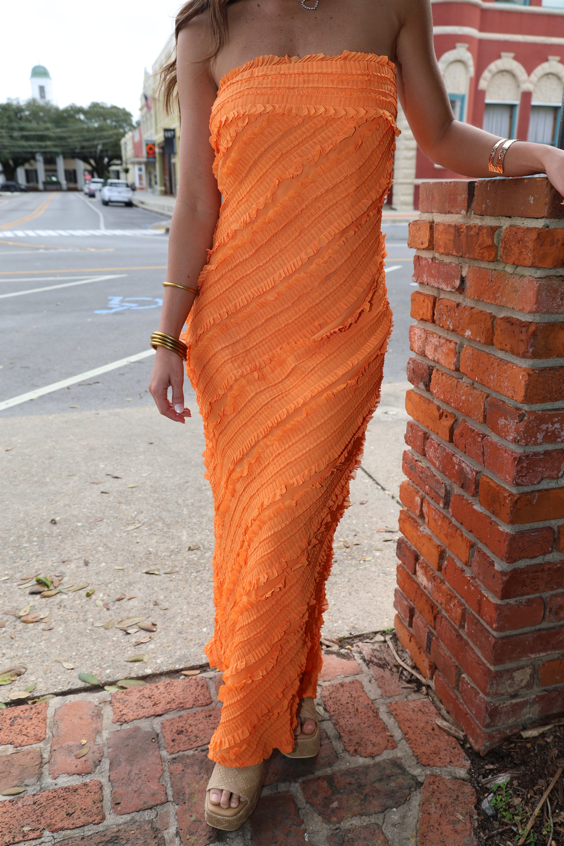 Embodying the essence of a sun-kissed resort getaway, the Sabeen Dress in a radiant orange hue unfolds like a serene sunset, inviting elegance to wedding celebrations and prom nights alike. Its graceful maxi silhouette drapes effortlessly, imparting a sense of sophistication and carefree luxury, perfect for the discerning fashion connoisseur.