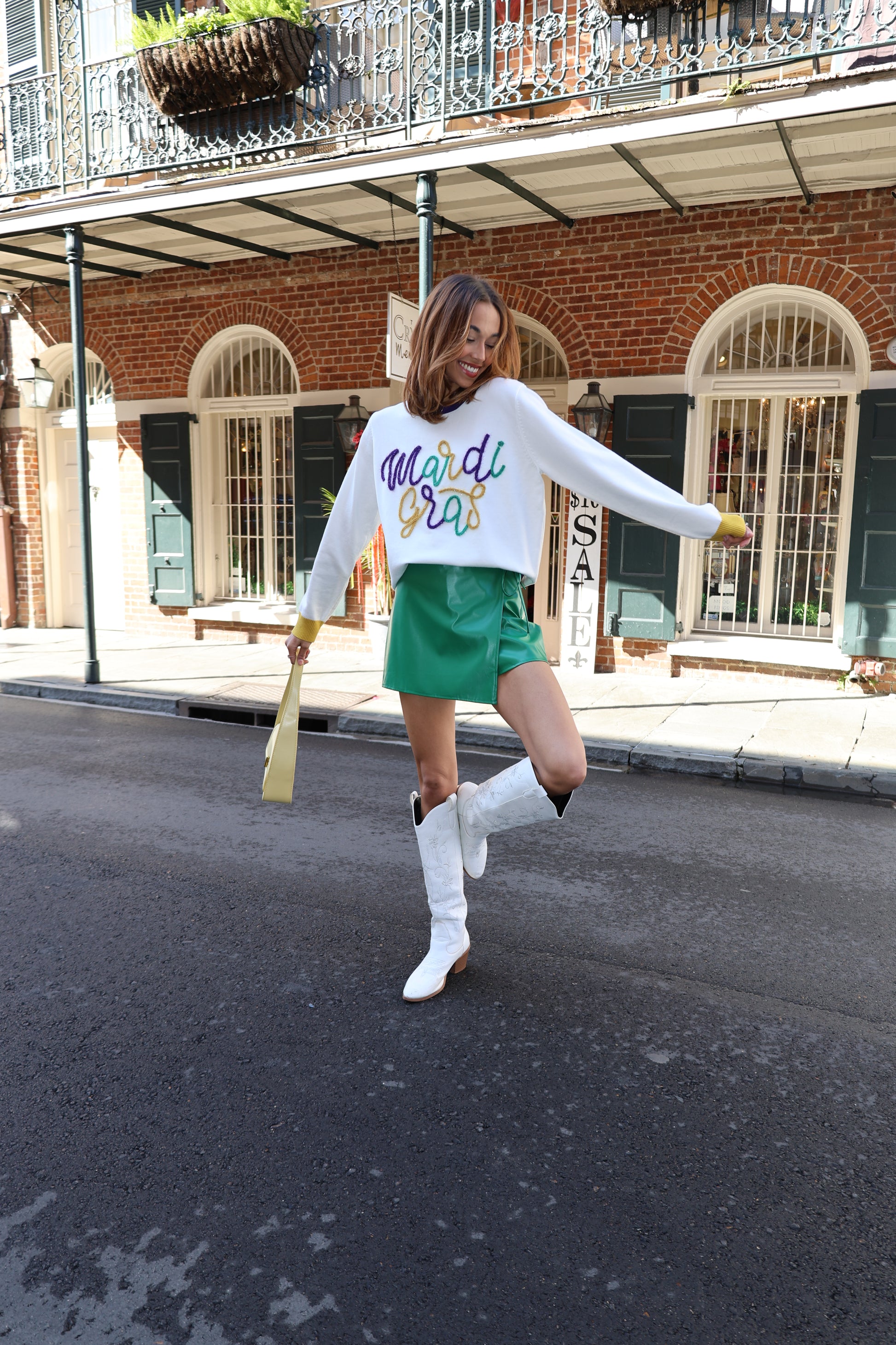 Get straight to the fun with our "To The Point" green skort. Perfect for Mardi Gras celebrations or any occasion where you want to add a touch of green. Show off your playful side with this quirky skort that combines the best of a skirt and shorts. (Skort and Mardi Gras not included.)